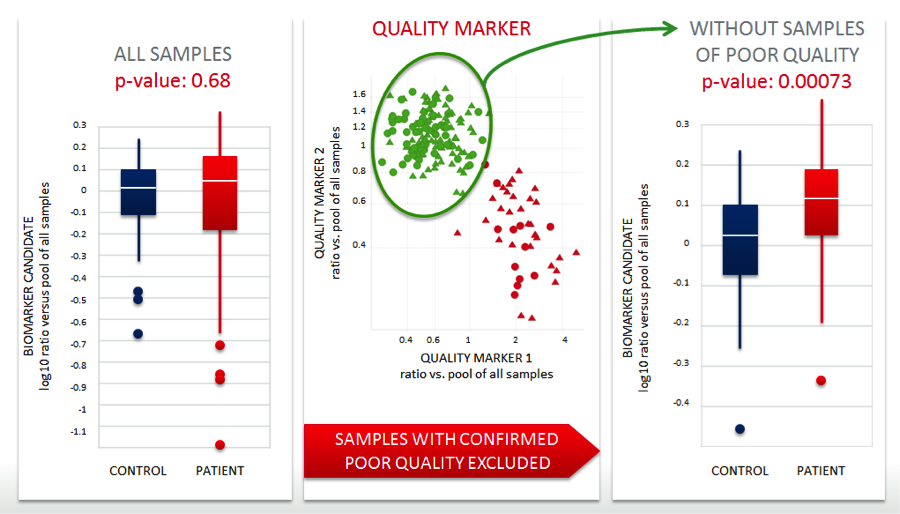 Figure Description: Example of a beneficial effect of sample quality control in a biomarker identification study